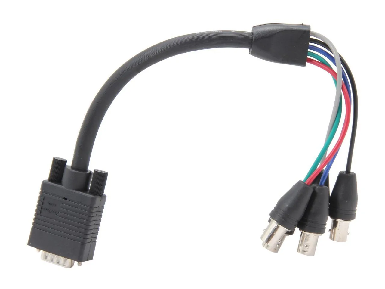 The cable can also be used with a VGA out signal, breaking out to 5 BNC female connectors that can be used with a 5 BNC (M-M) cable for use with a BNC monitor/display.