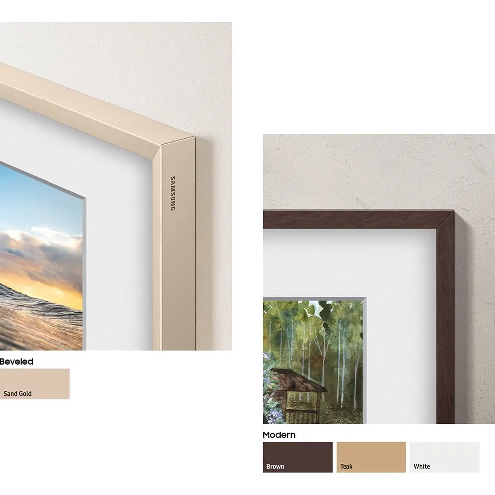 Enhance your viewing experience with the 85" The Frame Customizable Bezel in a sophisticated Modern Brown finish. This bezel is designed to seamlessly integrate with your television, providing a stylish border that complements any decor. Transform your TV into a stunning work of art when not in use.