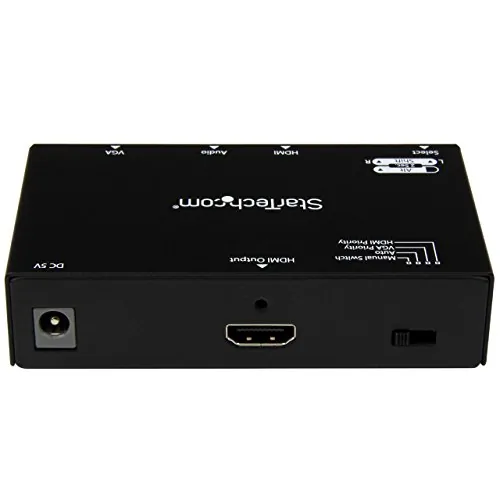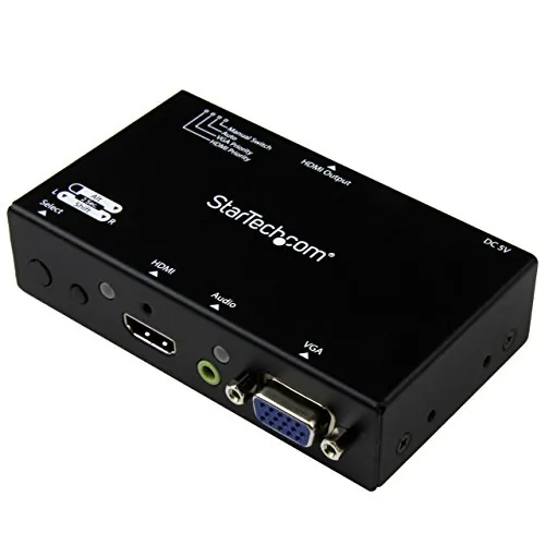 This A/V switch has been designed with the boardroom and classroom in mind: the VS221VGA2HD features VGA and HDMI inputs to support a wide range of devices, and the built-in converter makes it easy to connect to the room's display without the use of additional adapters. Plus, automatic switching encourages on-the-fly collaborationamong students or co-workers, by making it easy to share your projector between multiple source devices.
