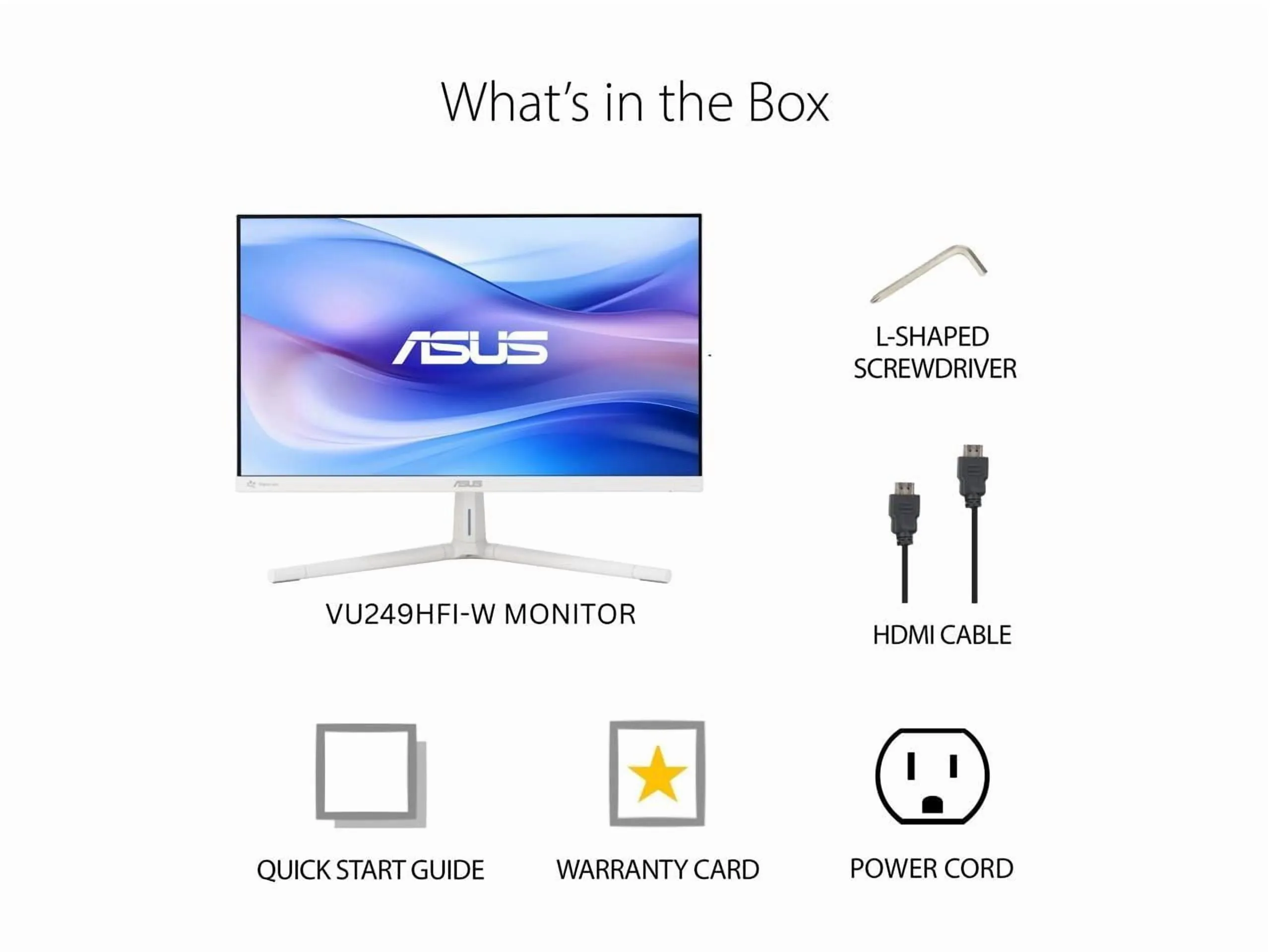 ASUS 24 (23.8 inch viewable) 1080P Eye Care Monitor (VU249HFI-W) - Full HD, IPS, 100Hz, SmoothMotion, Adaptive Sync, Nano-ion, Eye Care Plus, VESA Wall Mountable, 3 yr warranty