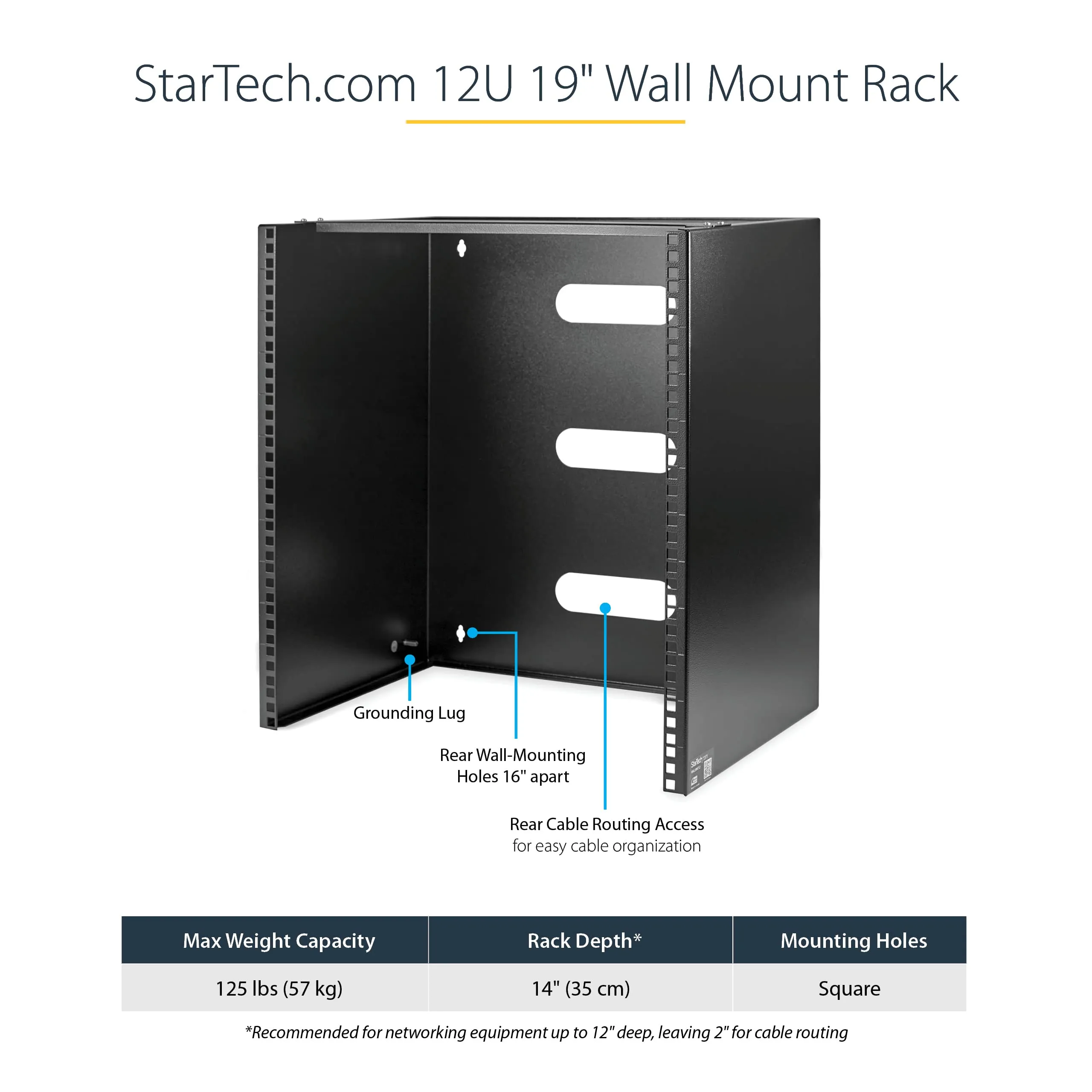 Wall-Mount Bracket for Shallow Equipment - 12U - Mount equipment that is up to 12 inches deep, such as patch panels or network switches, to your wall
