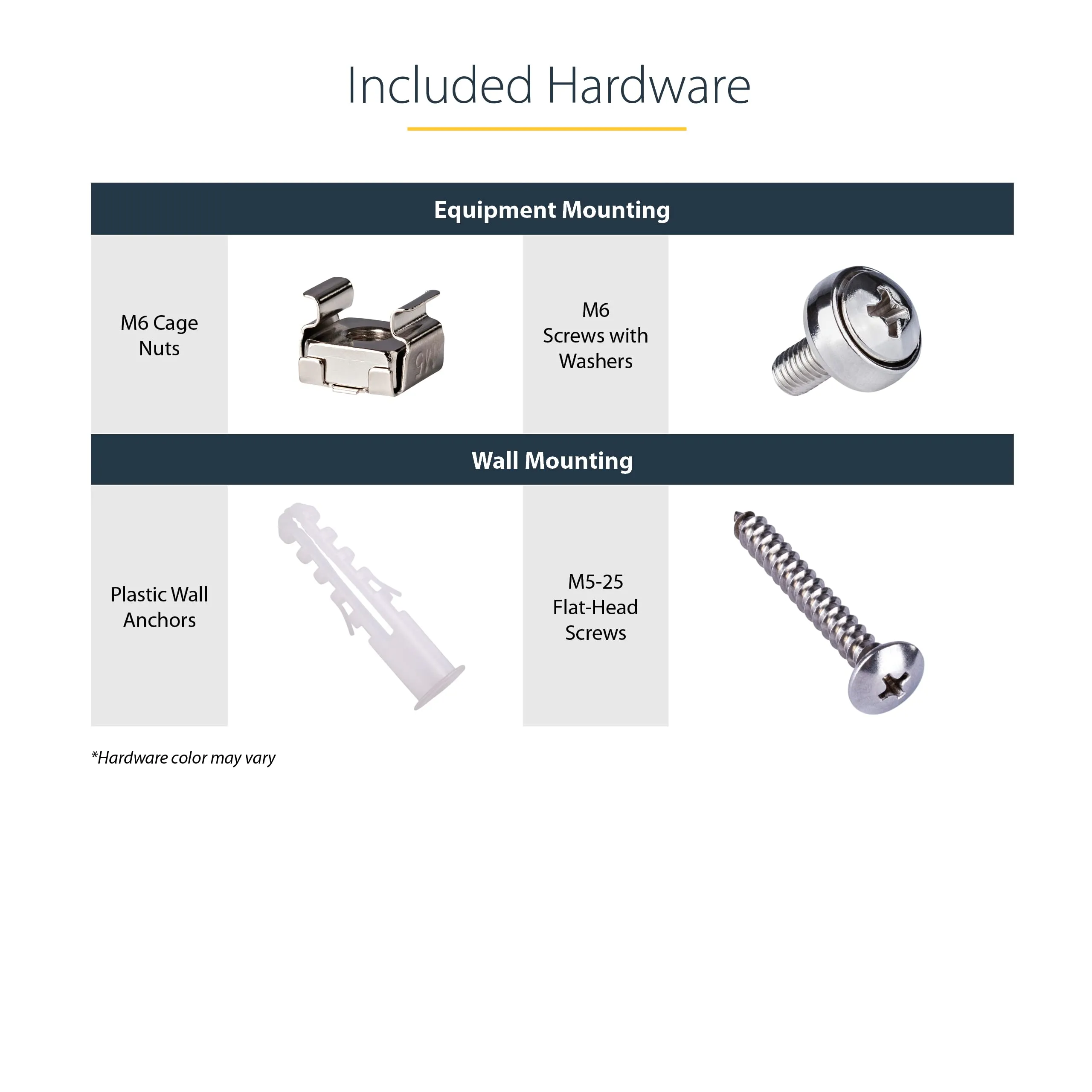 This wall mount rack is made from durable cold-rolled steel and features pre-drilled holes spaced 16 inches apart, making it easy to install on standard drywall frameworks. The included anchors and screws ensure secure attachment to the wall, while the equipment mounting hardware allows for seamless setup of your devices.