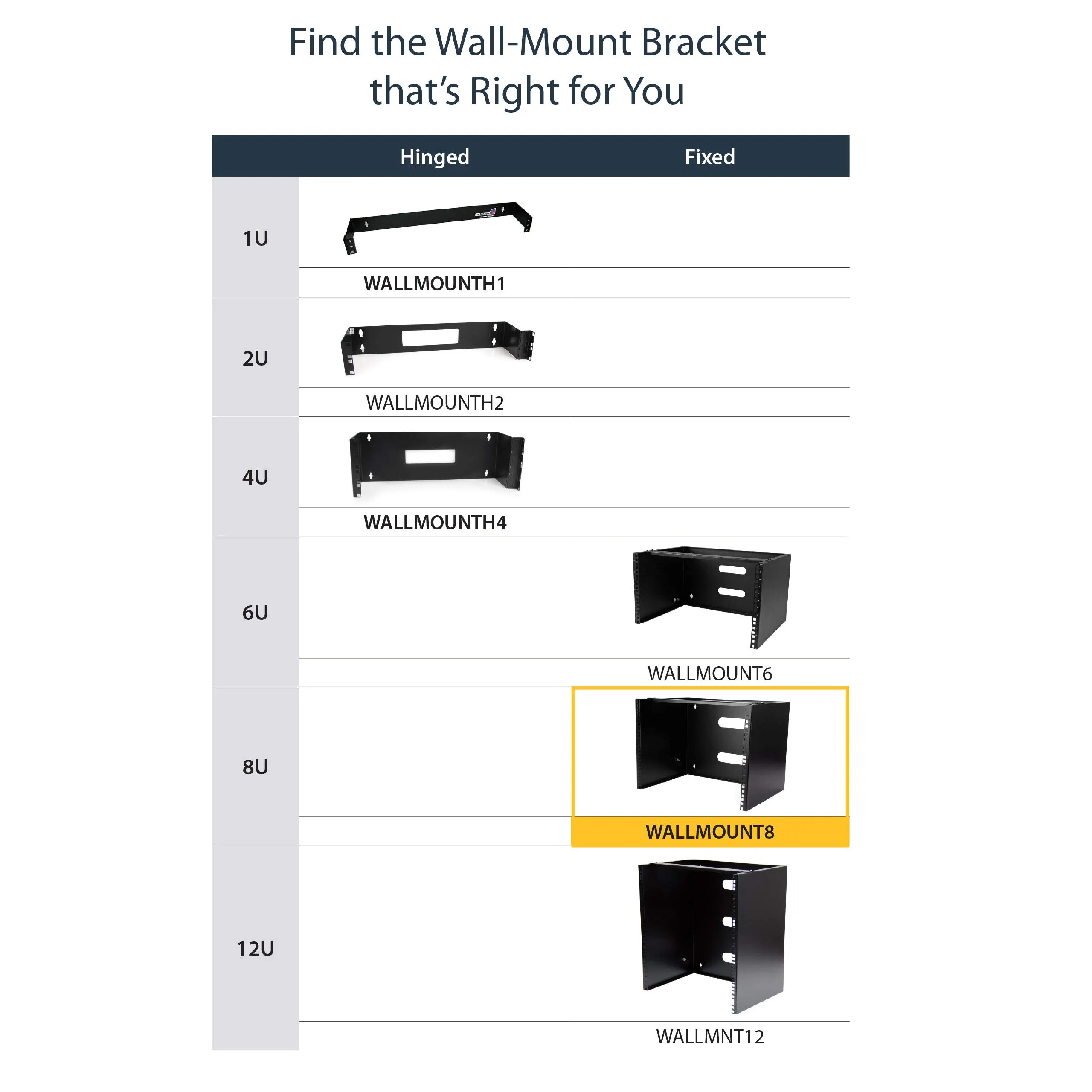 Wall-Mount Bracket for Shallow Equipment - 8U - Mount equipment that is up to 12 inches deep, such as patch panels or network switches, to your wall