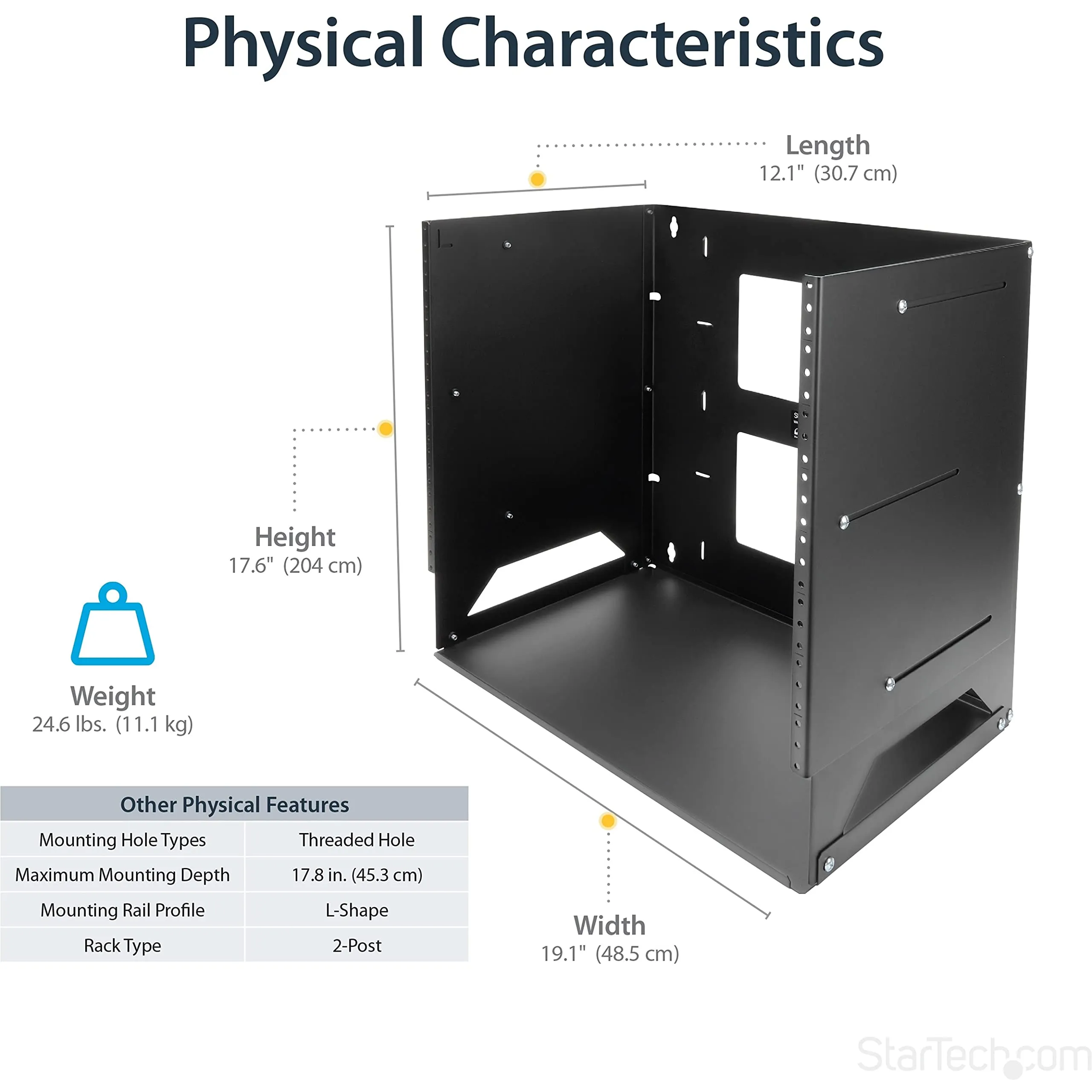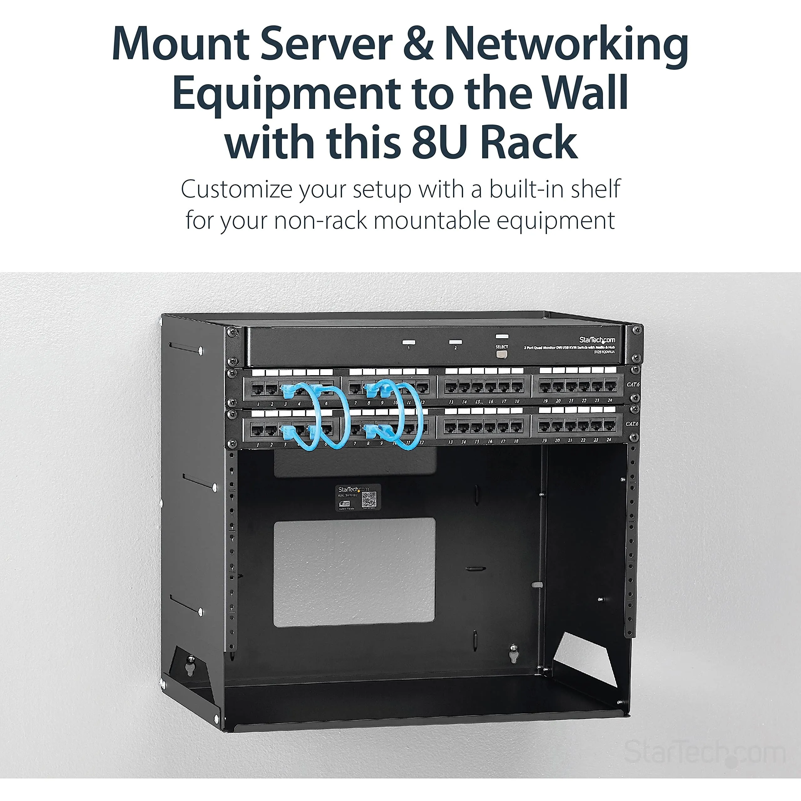 8U Wall-Mount Server Rack with Built-in Shelf - Mount your server network & telecom devices to the wall while storing equipment on a built-in shelf