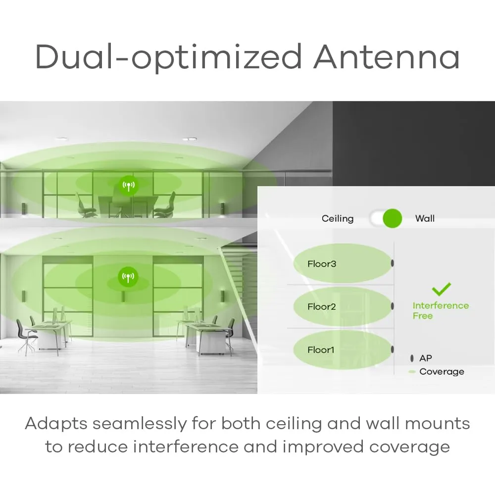 With support for both 2.4GHz and 5/6GHz bands, this 2x2 dual-band access point delivers WiFi 7 speeds of up to 6.5 Gbps. Experience ultra-low latency and enhanced reliability, making it perfect for real-time applications.