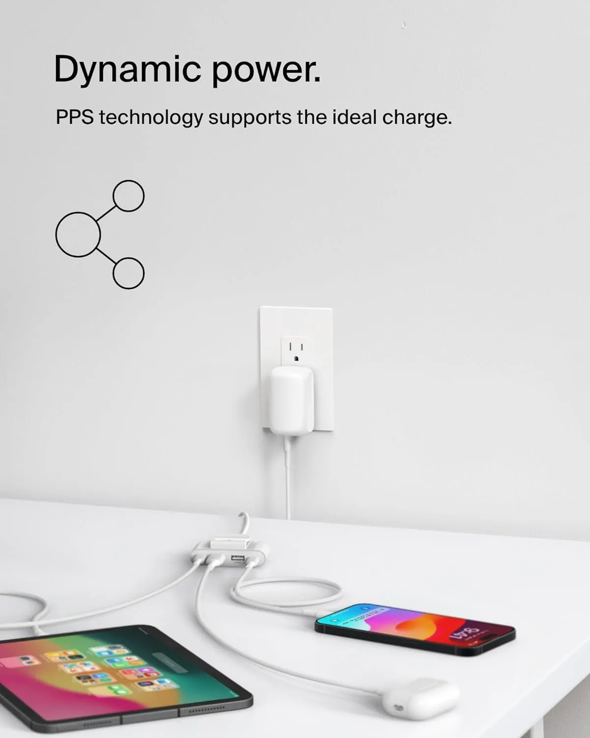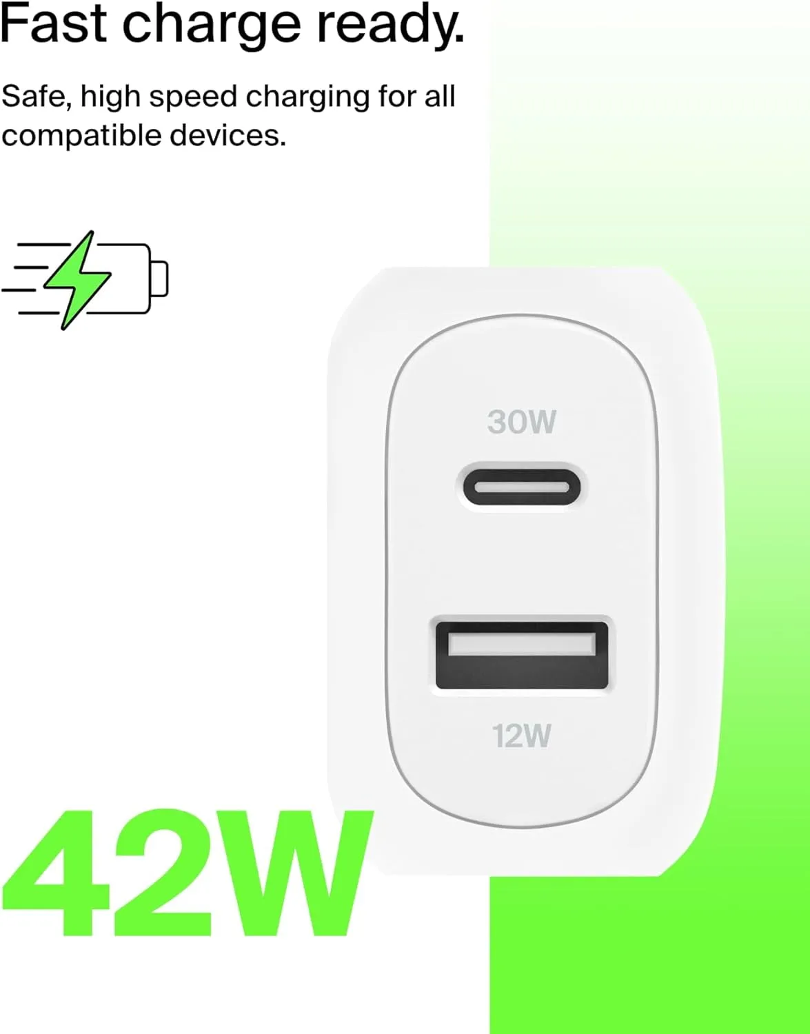 The 42W USB-C Wall Charger delivers fast and efficient charging for your devices equipped with USB-C technology. With Power Delivery (PD) and Programmable Power Supply (PPS) compatibility, this charger intelligently adjusts output based on your device's requirements, ensuring optimal charging performance.