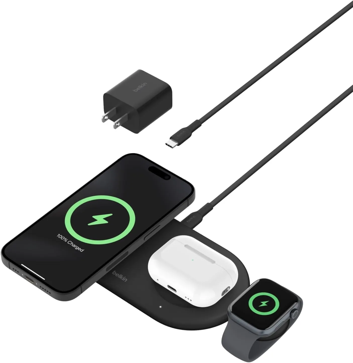 • 3-in-1 charging capability: charge your smartphone, earbuds, and Apple Watch simultaneously.