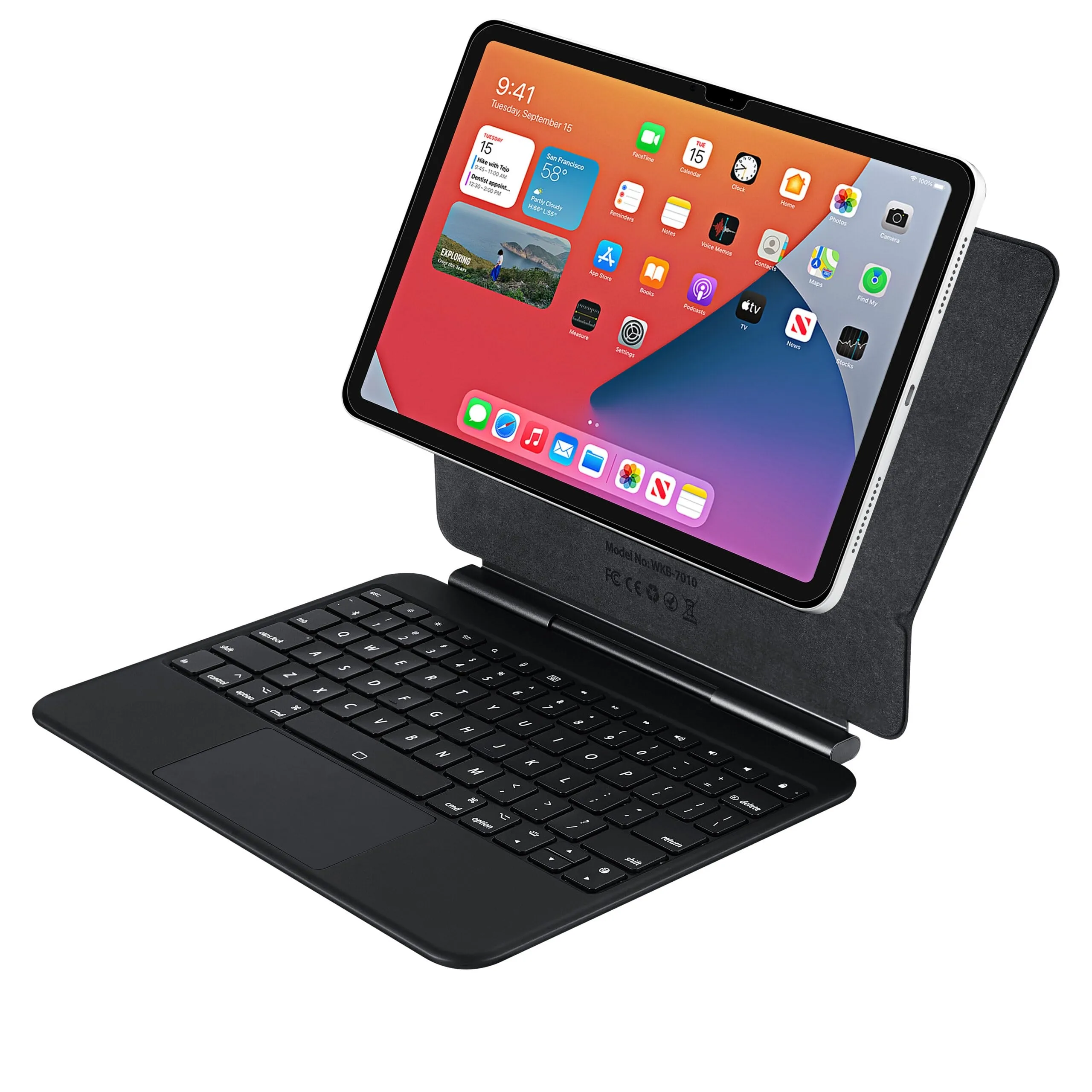 • Bluetooth(R) 5.1 folio keyboard for iPad Pro(R) 10.9 in. and iPad Air(R) 10.9 in.;• Compatible with Windows(R) 7 and above and Mac OS(R) 10.6 and above;• Aluminum case with integrated stand; adjustable angles;• Scissor-switch keys for tactile typing;• Slim .23 in. (6 mm) profile for portability;• Magnetic closure for secure travel;• Built-in Polymer rechargeable battery, recharged via computer USB port or USB power adapter;• Includes cable and manual;