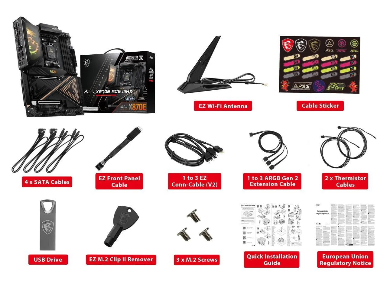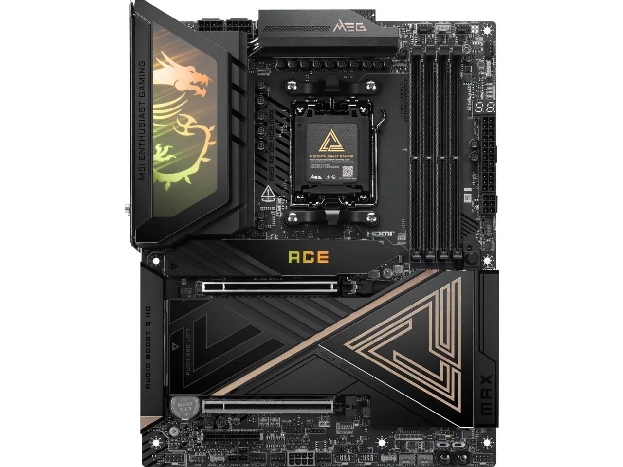 The MSI MEG X870E ACE MAX is a high-performance ATX motherboard designed for gamers and enthusiasts. It supports the latest technologies, featuring WiFi 7 and USB 4.0 connectivity to ensure lightning-fast data transfer and connectivity options. The motherboard is engineered for optimal cooling and has robust power delivery systems for overclocking and stable performance.