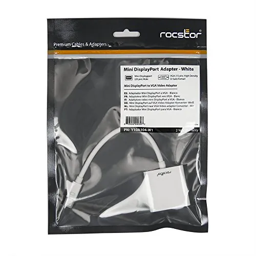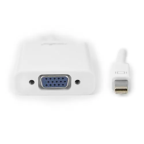 This Mini DisplayPort to VGA Adapter allows you to connect your device with a Mini DisplayPort interface to a VGA display. The sleek white design makes it a perfect addition to your setup.
