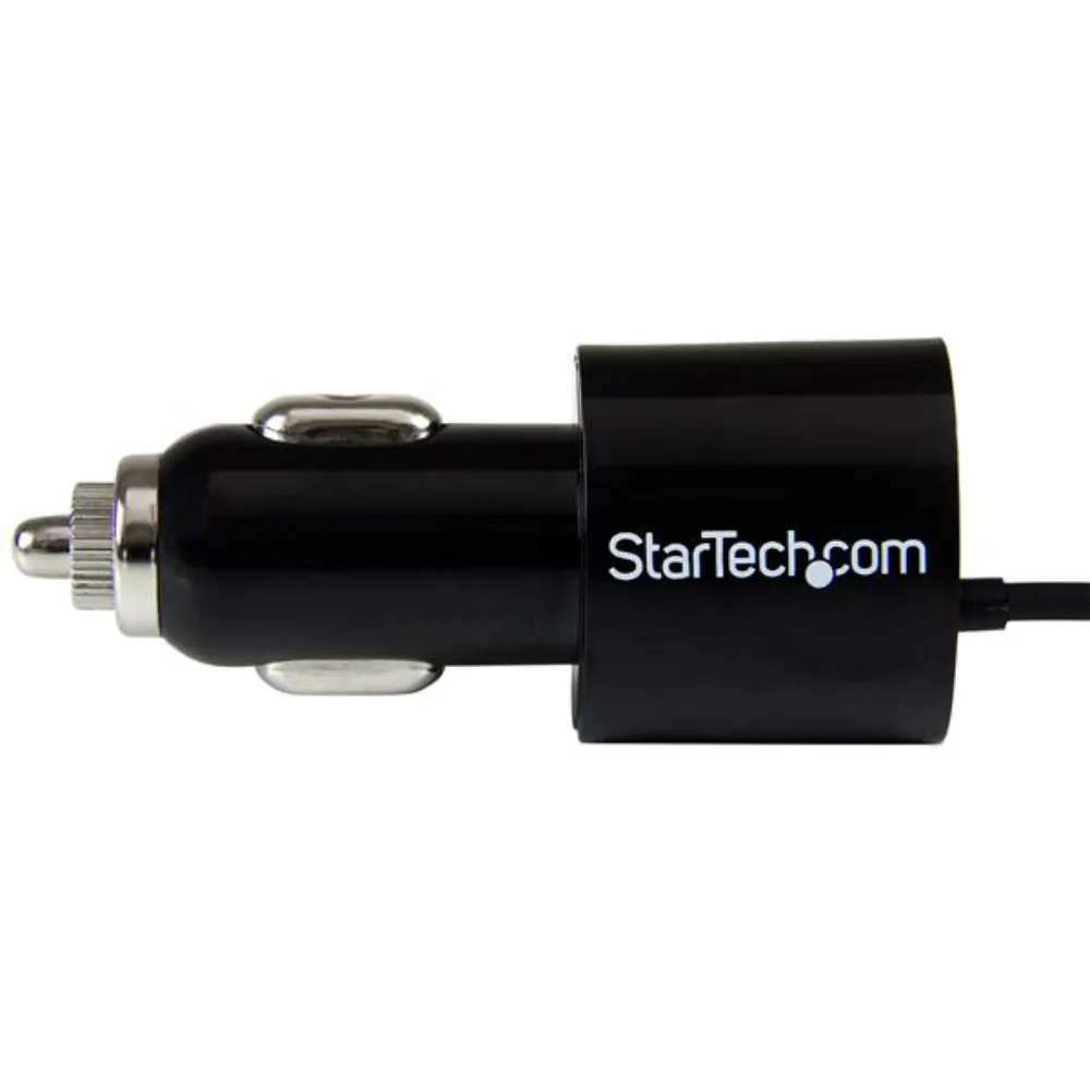 General InformationCharge two iPad tablets simultaneously, using your car charge port and our high-powered charger. Do you carpool to work and need to flip a coin to see who will get to charge their tablet on the way to the office? Do you need to charge your tablet and phone at the same time, so that they're both ready to use by the time you reach your destination? Whatever your situation, this dual-port car charger offers a high-powered solution for charging two mobile devices simultaneously, while you're on the road. Simultaneous charging You can charge any Lightning mobile device, including your iPad or iPhone, using this convenient 2-in-1 adapter. Plus, since the cable is attached directly to the charger, it won't ever get lost in your vehicle, or be just out of reach while you're driving. The integrated USB port gives you the option to charge an additional Apple device, including a second iPad, at the same time, through either a separate or . Don't have a second Apple device? You can also charge Micro USB or Mini USB-enabled mobile devices with this adapter, such as a smartphone, tablet, or GPS using a USBHAUBMB1MW" text="Mini/Micro USB cable. High-powered charging No matter what you choose to charge, you can always be sure you have the correct charge available for all your mobile devices. Each charge port provides 2.1A of power to assure that you have enough power to charge everything from a phone to a tablet. Whether you're charging two tablets at the same time or charging a phone and a tablet, you can be sure all of your mobile devices are ready when you need them. The durable USBLT2PCARB black dual-port car charger is backed by StarTech.com's 2-year warranty to ensure dependable performance. More from the ManufacturerTechnical InformationDevice Supported: iPadDevice Supported: SmartphoneDevice Supported: USB DeviceDevice Supported: iPhoneDevice Supported: Tablet PCDevice Supported: GPS DeviceDevice Supported: iPodPower DescriptionInput Voltage: 12 V DCInput Voltage: 24 V DCOutput Voltage: 5 V DCMaximum Output Power: 21 WMaximum Output Current: 4.20 AInterfaces/PortsUSB: YesPhysical CharacteristicsHeight: 1"Width: 1.4"Depth: 13.4"Weight (Approximate): 1.76 ozMiscellaneousCompatibility: Apple Devices: iPod iPad iPhone Environmentally Friendly: YesEnvironmental Certification: RoHSWarrantyLimited Warranty: 2 Year