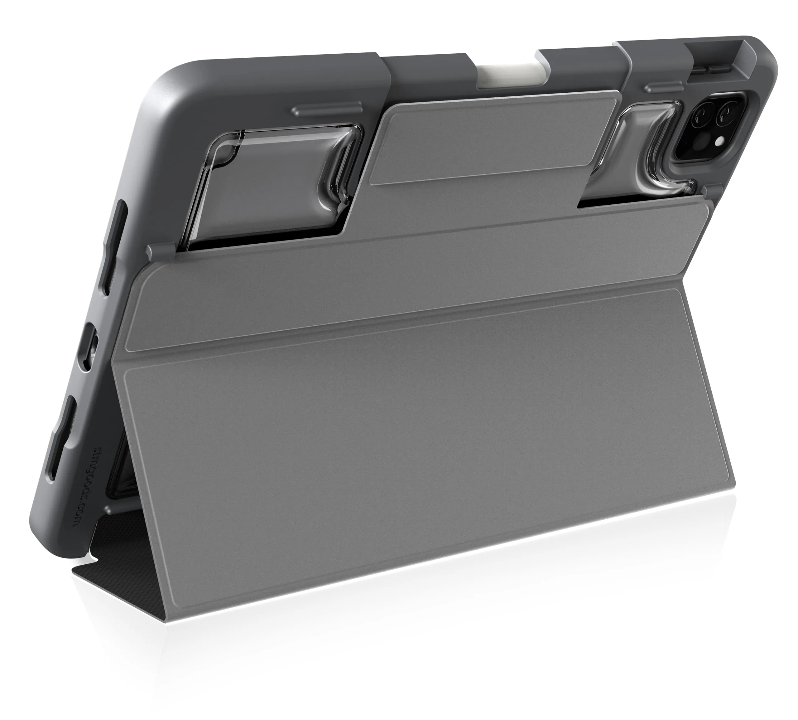 The Dux Plus case offers superior protection for your iPad Pro 13" M4, featuring a patented magnetic closure and rugged, reinforced corners to defend against accidental drops. The clear polycarbonate back panel allows for easy identification or personal customization.
